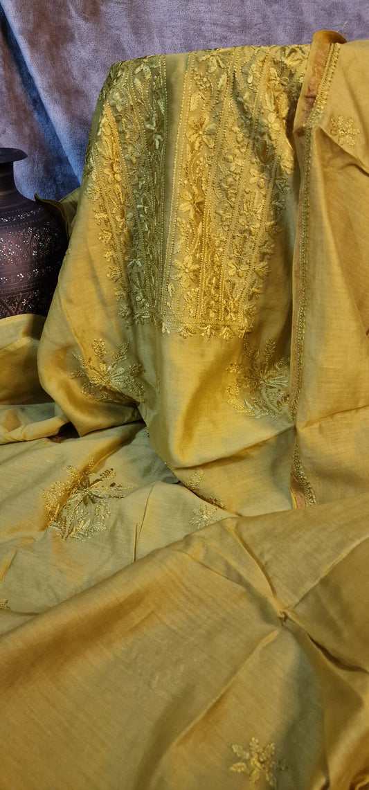 Embroidered suit: Chanderi silk