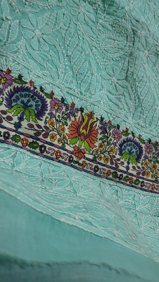 Chikankari shirt : kalamkari border