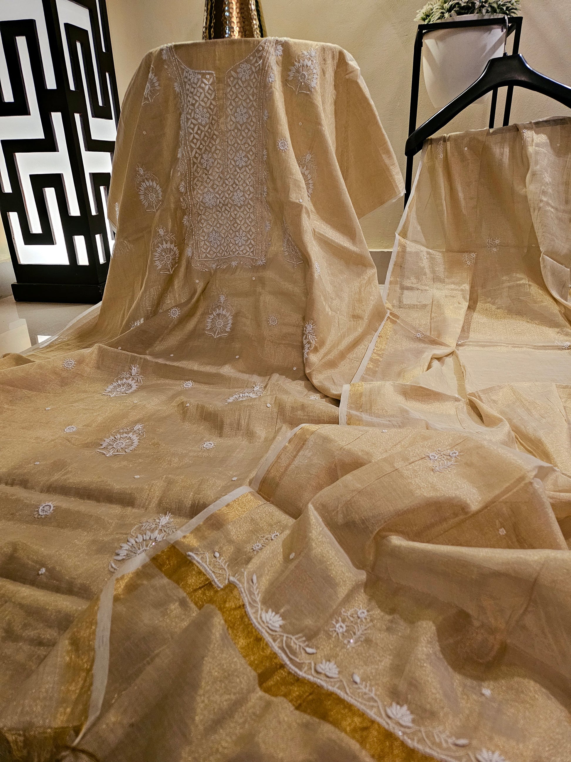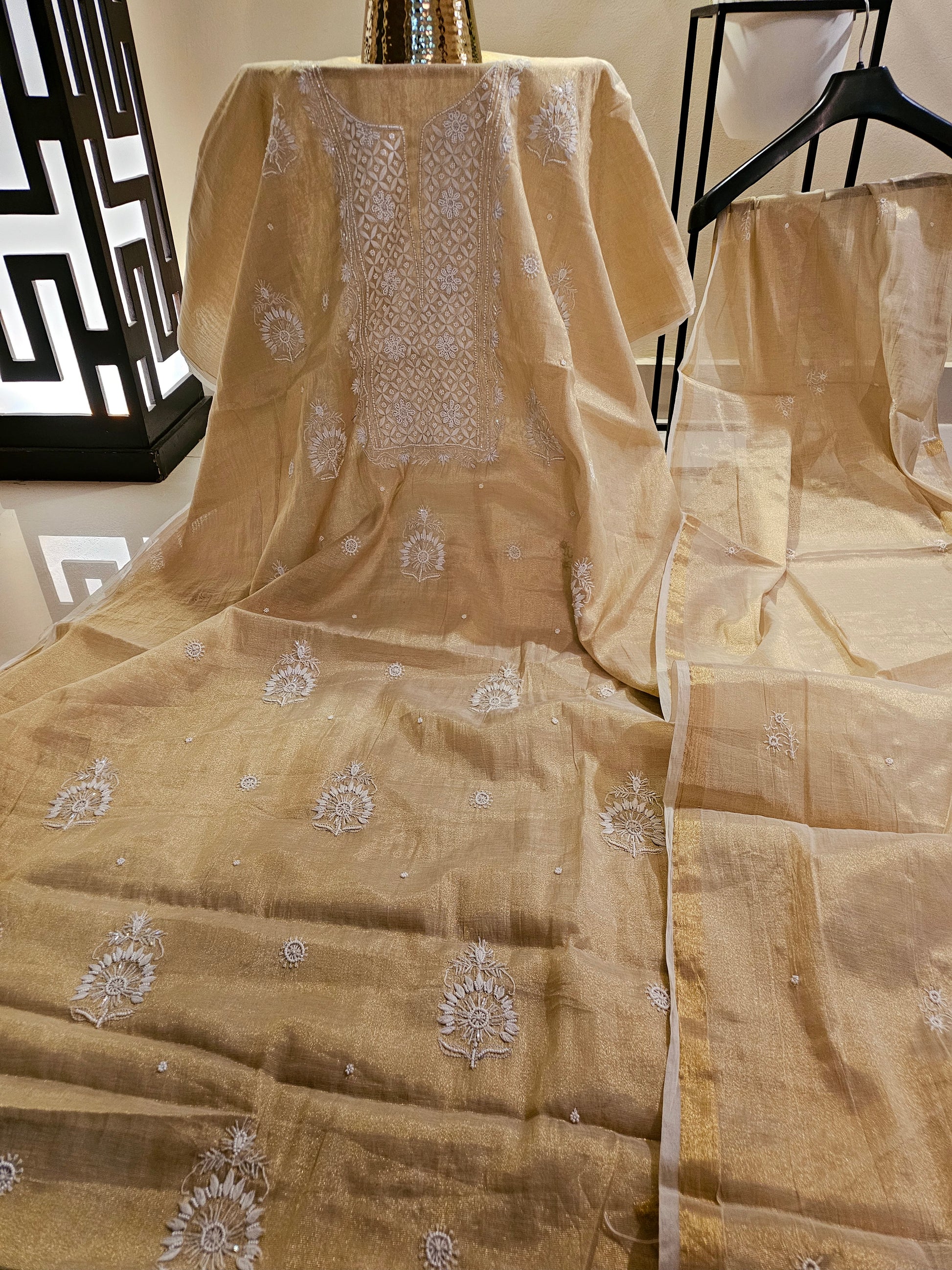 Chanderi silk chikankari suit