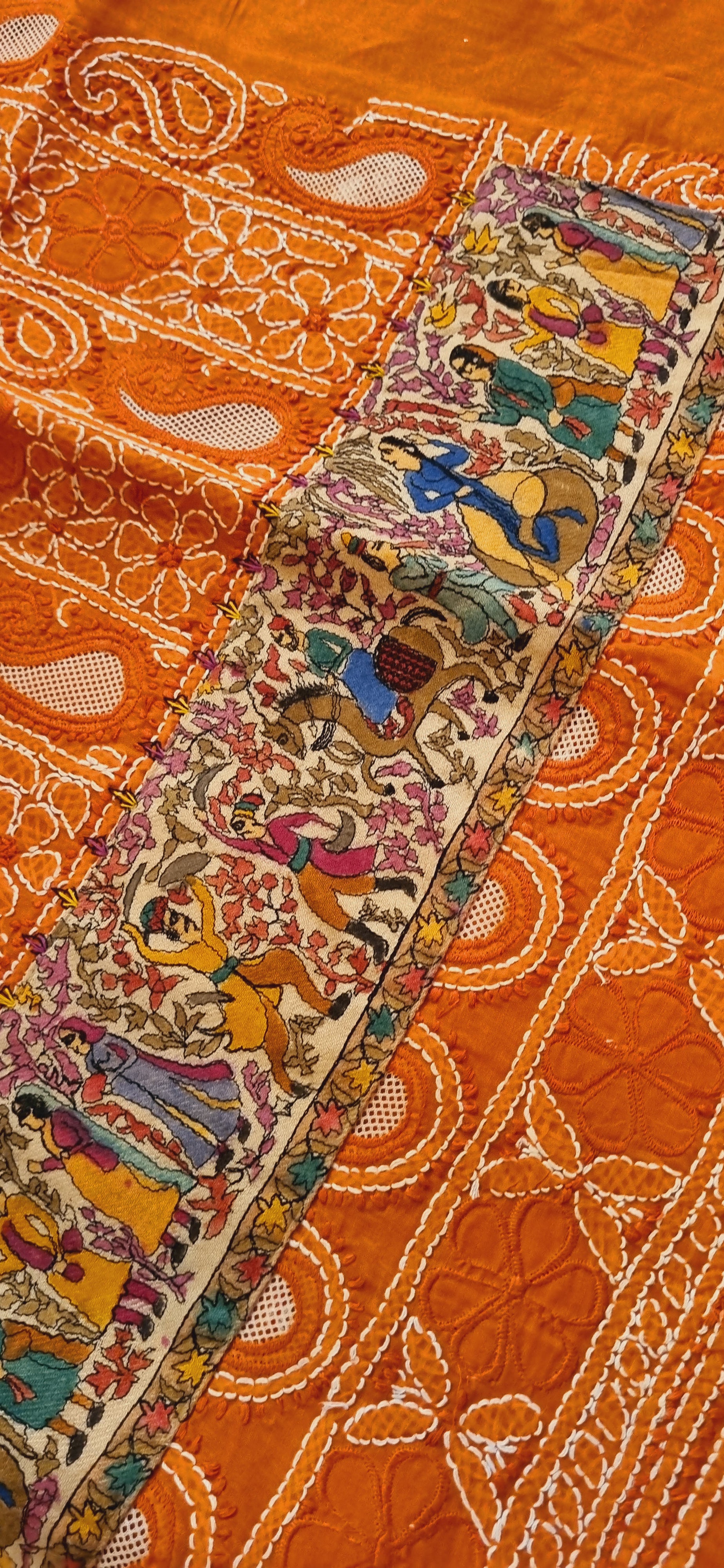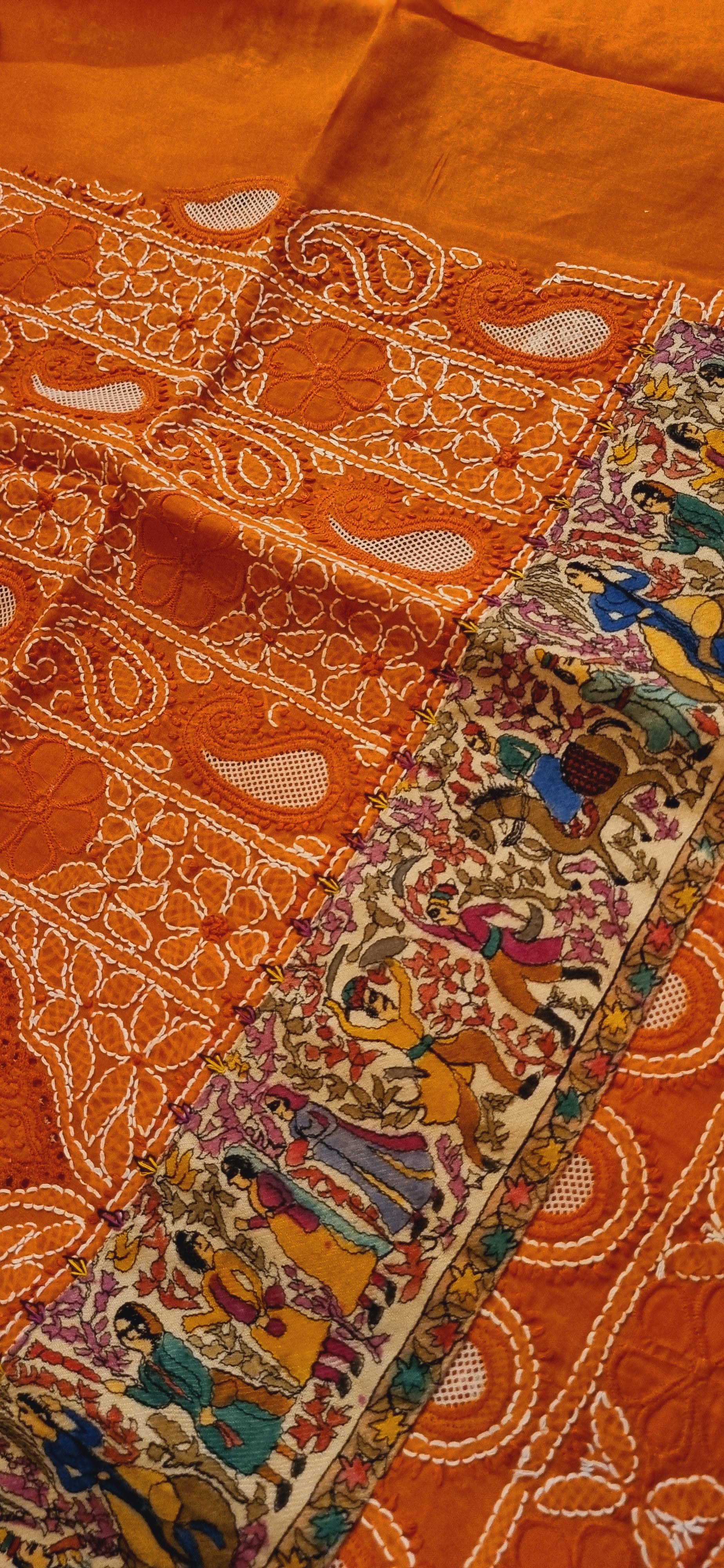 Chikankari shirt with kalamkar border