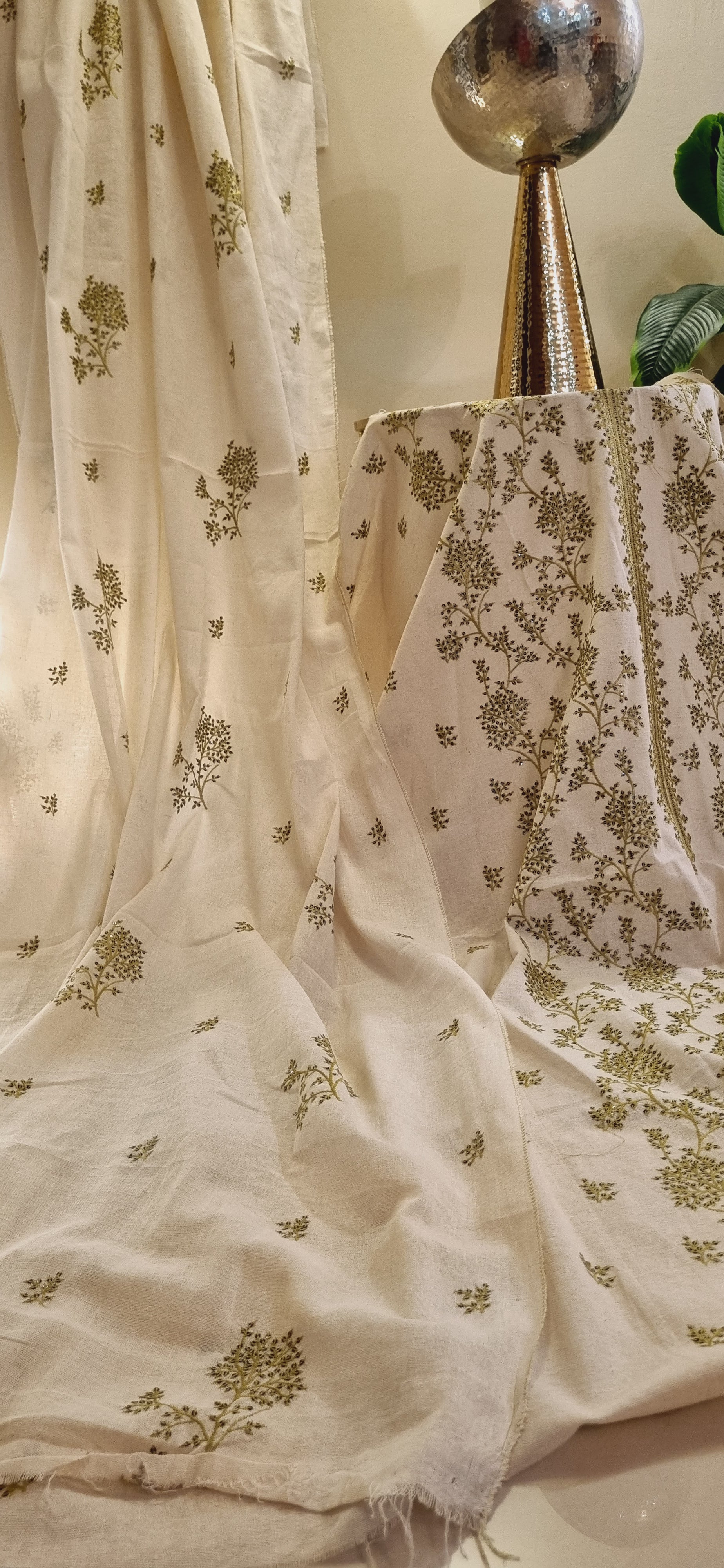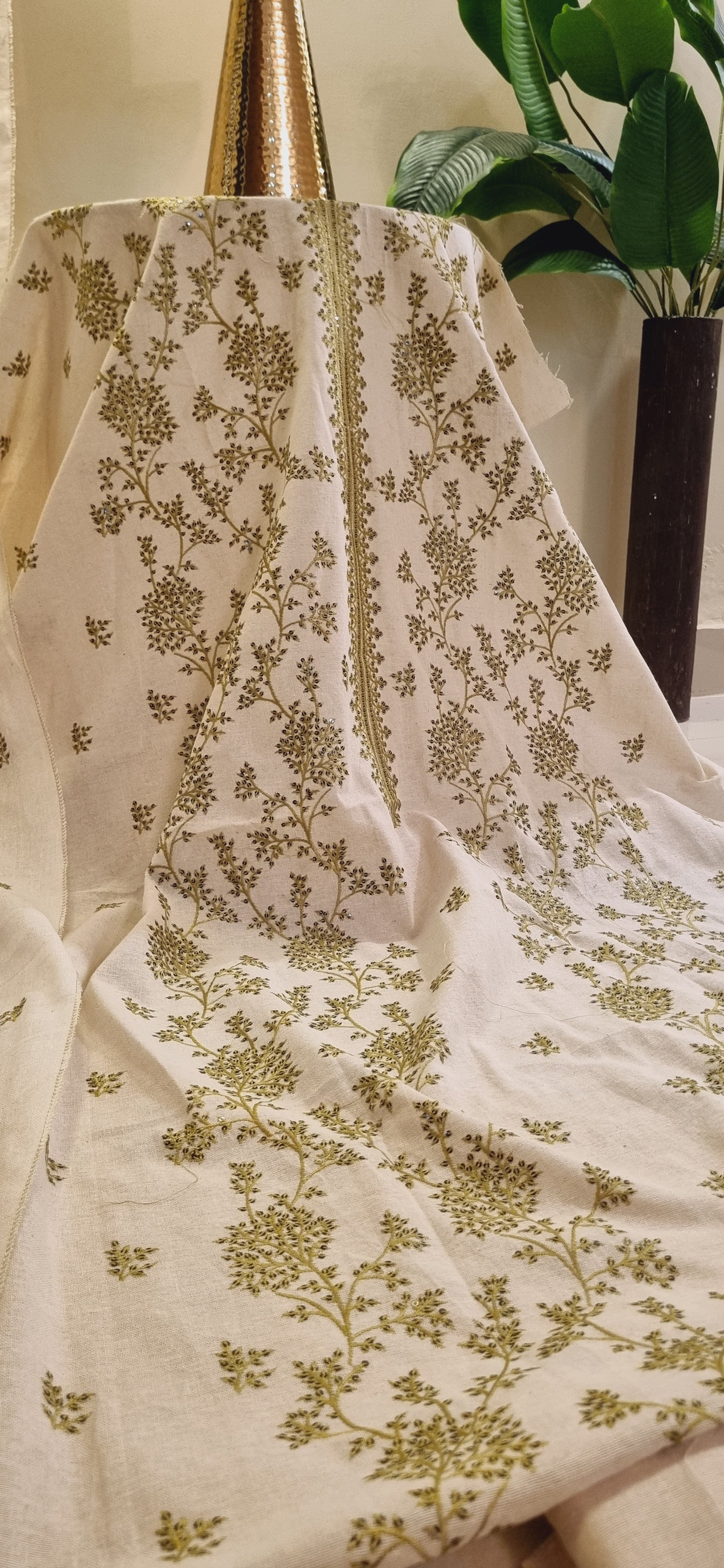 Khaddar karandi embroidered three piece suit
